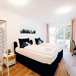 Naturnaher Rueckzugsort - Boxspring & Smart Tv & Wlan apartment overlooks the garden and comprises a balcony and a seating area with a washing machine. For added convenience, a separate toilet and a shower are available at this accommodation. A hairdryer, free toiletries, and bath sheets can also be found.